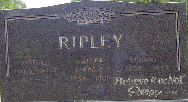taping of his television program. Buried next to his parents in the Oddfellows Lawn Cemetery in Santa Rosa, California, Ripley’s last will and testament was notable for remembering all who had helped him along the way. His house was sold to Ferruccio Tagliavini, a well-known opera singer, but was later torn down to make room for newer housing. Many of Ripley’s possessions were sold at a multi-day auction.