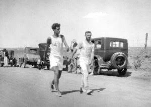 The race was eventually won by a young Oklahoma Cherokee Indian, 20-year-old Andy Payne, who averaged 10-minute miles for the entire race. According to Charles Kastner’s book, Bunion Derby: The 1928 Footrace Across America, Payne, like the other cash recipients needed the money for practical things like paying off the mortgage on the family farm or helping out with general family expenses.