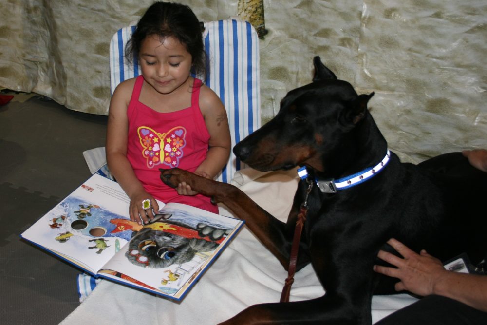 Also on that day, two granddaughters visiting from Arizona had come with their grandmother who lived in the area. They had begged their grandparents to delay that day’s trip to Disneyland. Their priority had been getting to the library to read to the dogs.