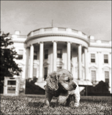 In May of 1945 an Irish setter pup was given to Margaret Truman, Harry’s daughter, by Postmaster General Robert Hannegan. (Truman was sworn in as President April 12, 1945 after the death of Franklin Roosevelt.) Margaret named the dog Mike, and Mike spent that first summer at the family home in Independence, Missouri. According to information on the Truman Library website, Mike had dog house with his name painted on it. Mike seems to have spent some time in D.C. with the family as the site notes that Margaret opted to find another home for Mike because he was frequently sick from the added treats given him by staff members.