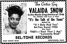By the time she was five, she was singing and dancing and playing the violin as Valada the Great. (She changed the spelling of her first name in the 1930s.) Valada the Great was the star attraction of the Pickaninny Troubadours, trained and managed by the Snow parents.