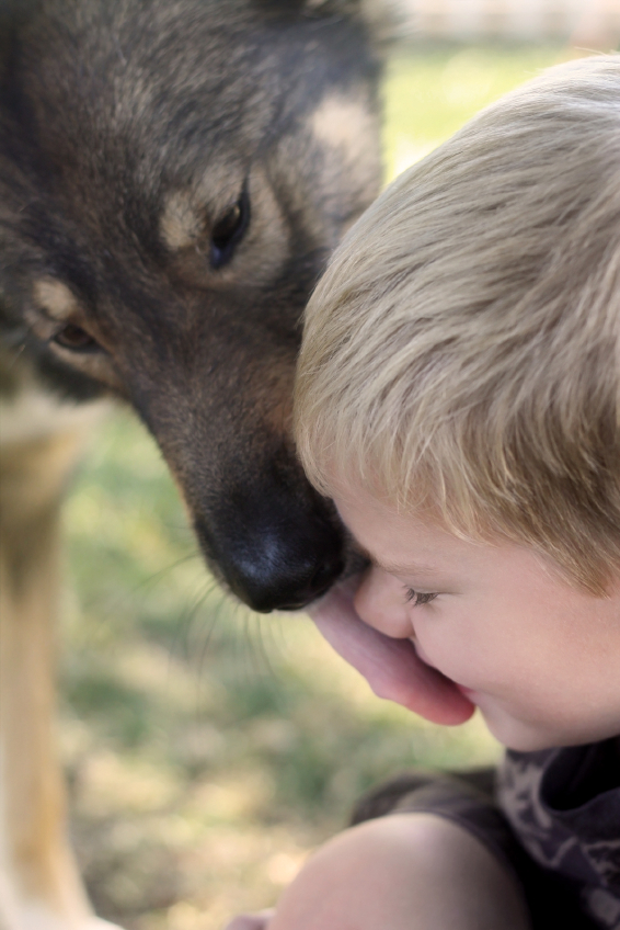 A neighbor looked out and saw the pair on their jaunt, and decided the boy was a bit young for a big adventure. She called out to them, offering a couple of cookies. That was enough to slow progress of the journey that day. Lucky and the little boy came up to visit with the neighbor and eat some cookies.